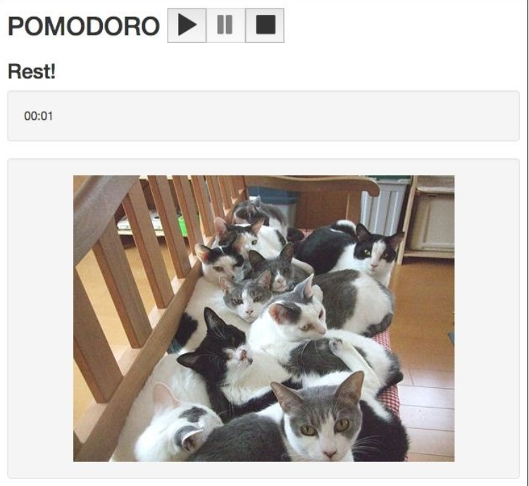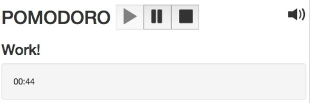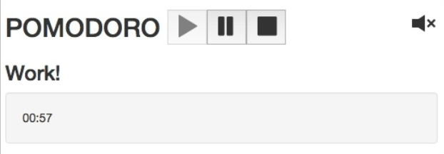查看页面。 点击暂停或停止按钮, 声音被挂起了! 我们还什么都没做呢。 记得我们的目的是在工作时有声音而不是在休息时。 所以, 我们看看再 mutations.js 文件内的 togglePomodoro 方法并添加一个通过番茄钟当前状态来开始暂停声音的机制: