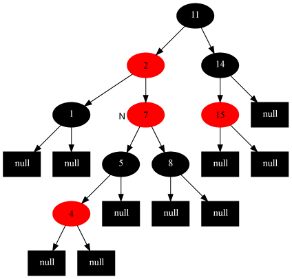 解法,直接把当前结点染成黑色,结束此时红黑树性质全部恢复。