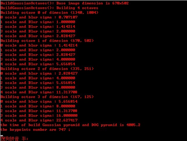 printf( "the time of build Gaussian pyramid and DOG pyramid is %.1f/n", t/(cvGetTickFrequency()*1000.) );
