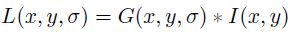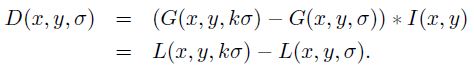 而,一个图像的尺度空间L(x,y,e) ,定义为原始图像I(x,y)与上述的一个可变尺度的2维高斯函数G(x,y,e) 卷积运算。