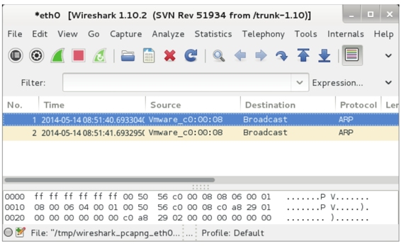 (2)在该界面Start下面,选择要捕获的接口。这里选择eth0,然后单击Start按钮,将显示如图9.50所示的界面。