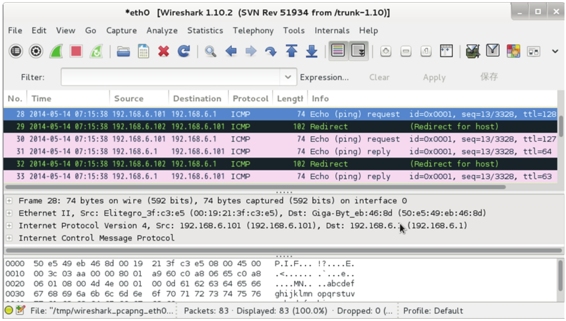 • 28:表示192.168.6.101(源)向192.168.6.1(目标)发送ping请求。