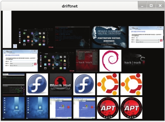 (4)用户还可以使用Driftnet工具,捕获目标系统浏览过的图片。执行命令如下所示: